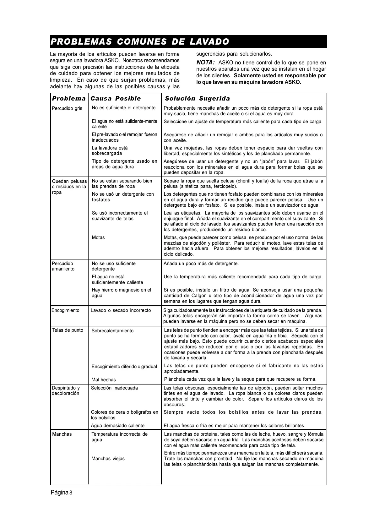 detergente bajo en fosfato. Si es posible, instale un suavizador de agua.