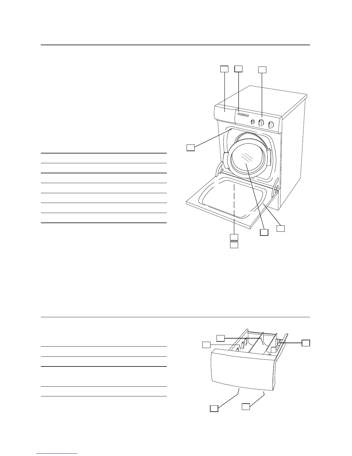 Asko W620 - Appliance Components Overview; Main Washer Parts Identification; Detergent Compartment Layout