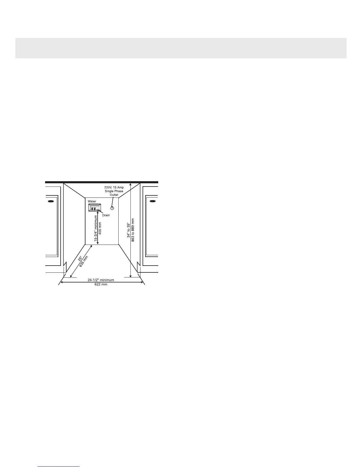 must be at least 24½" (622 mm). Space must