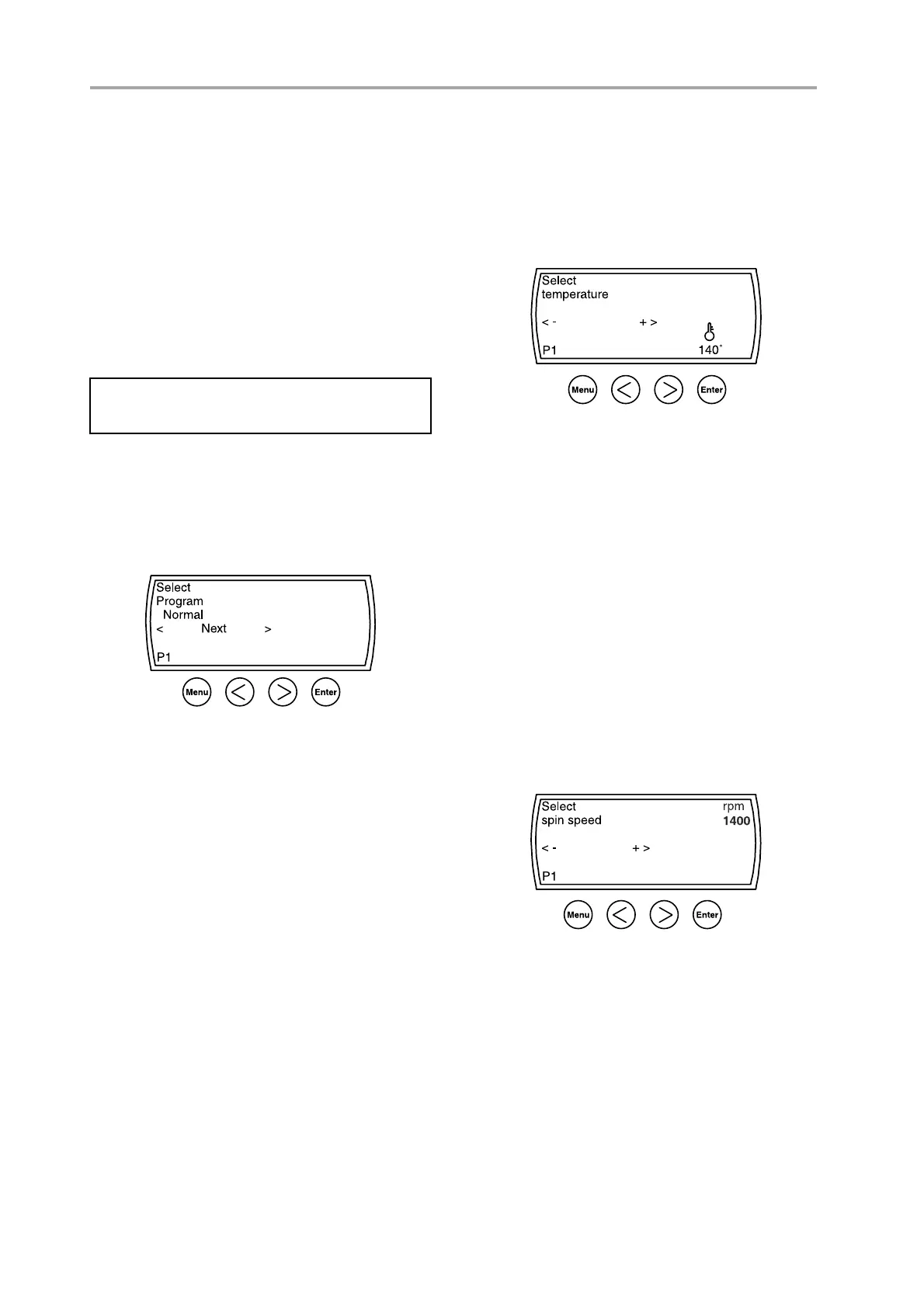 1. Press MENU until “Select spin speed” displays.