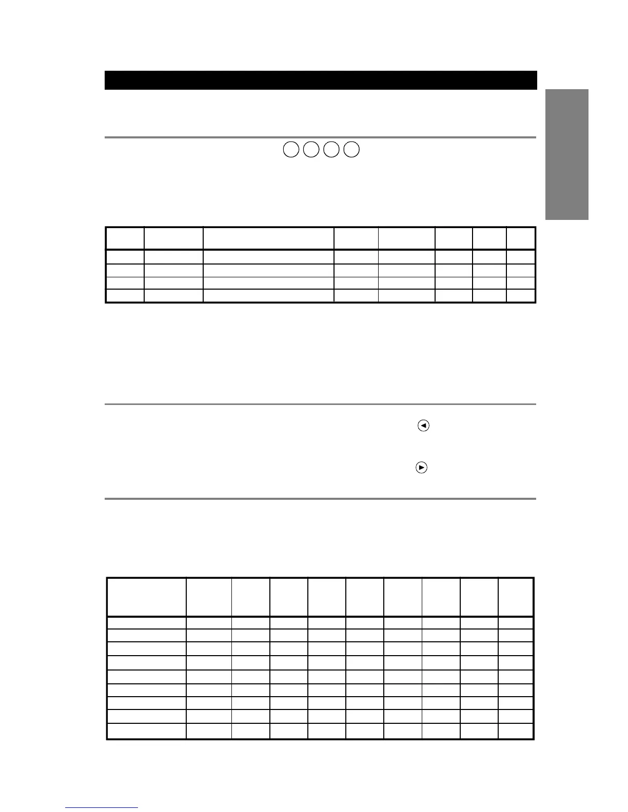 This table also lists the pre-programmed settings for