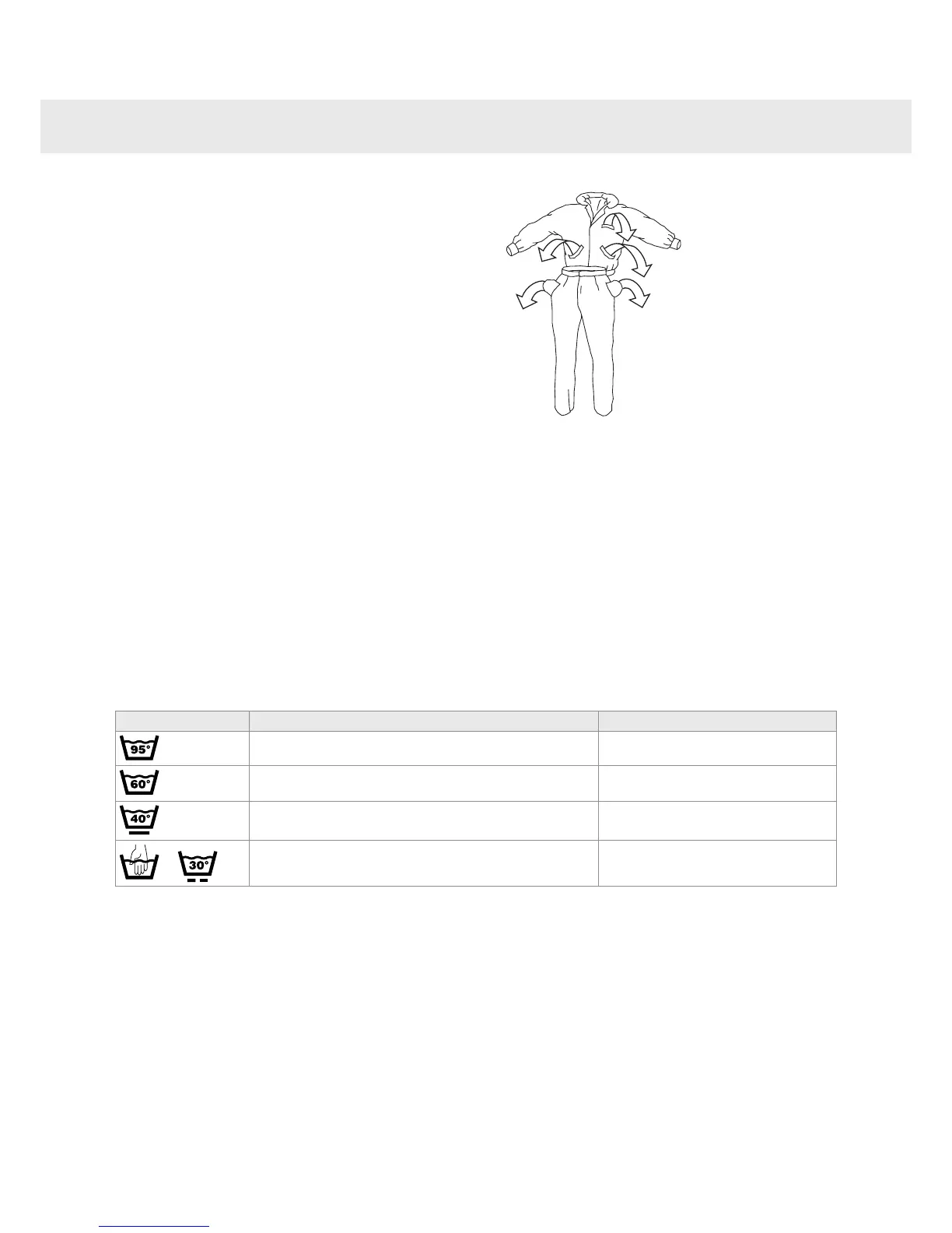 Examples of washing instructions and recommended programs. Always follow the washing instructions for each garment.
