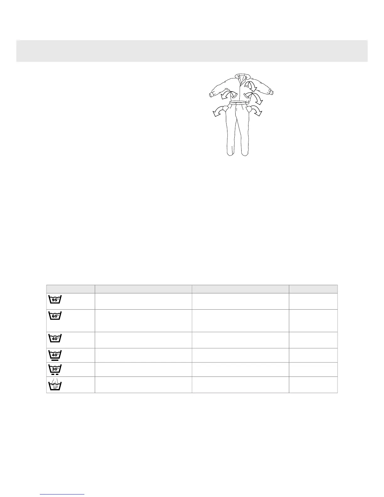 Examples of washing instructions and recommended programs. Always follow the washing instructions