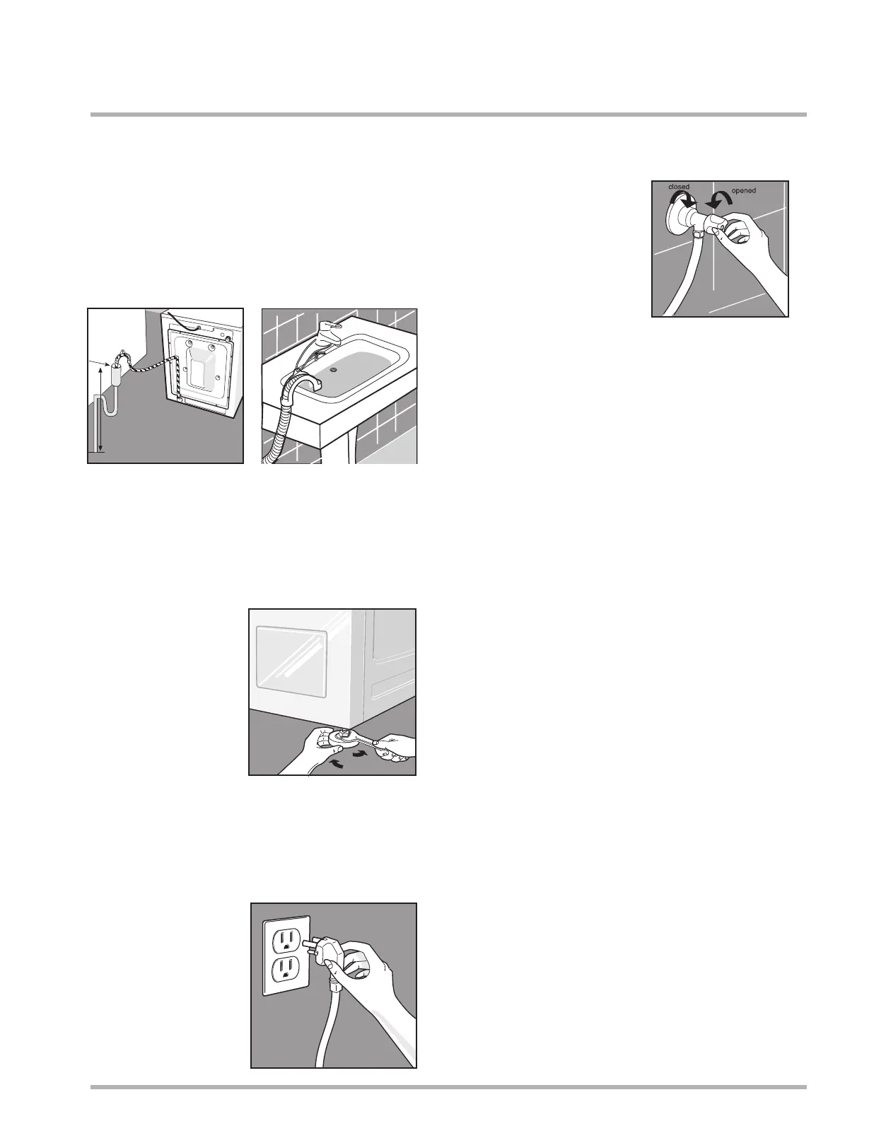 wall or other stable structure. Adjust legs up or down until washer is