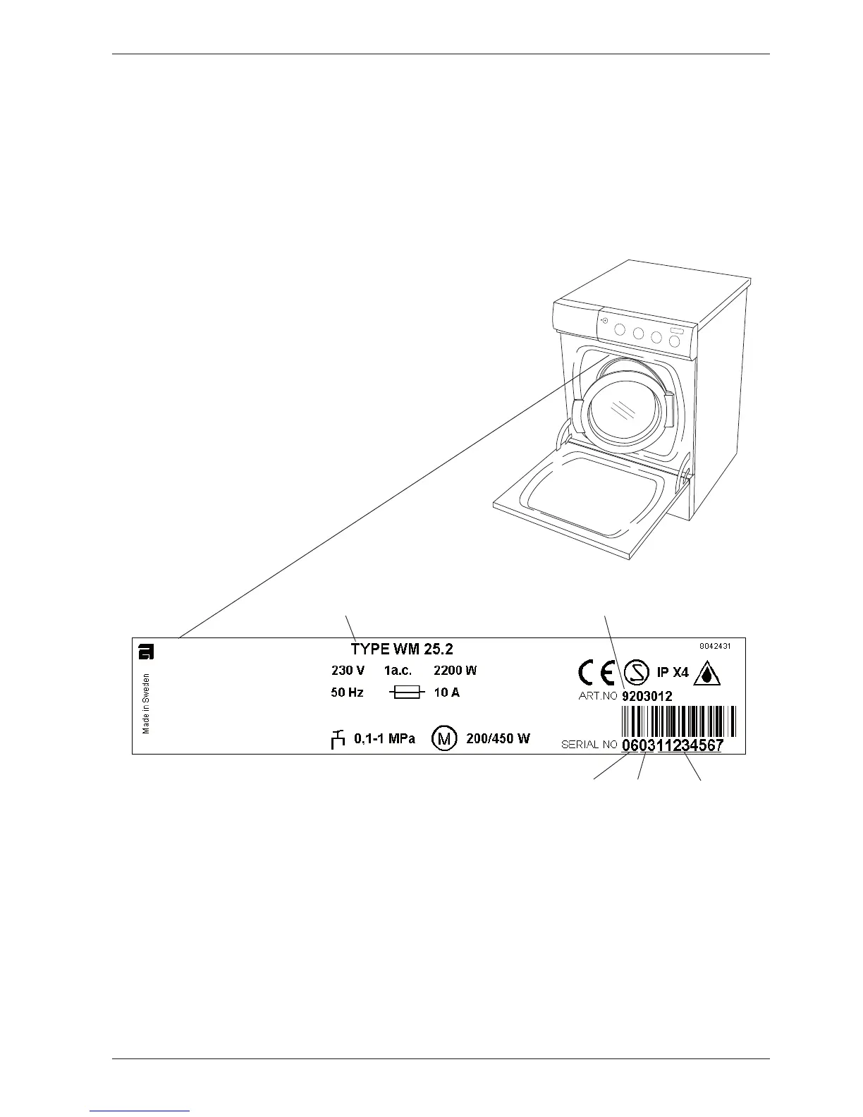 type. The type designation can be found on the machine plate, which is located inside the machine’s door.