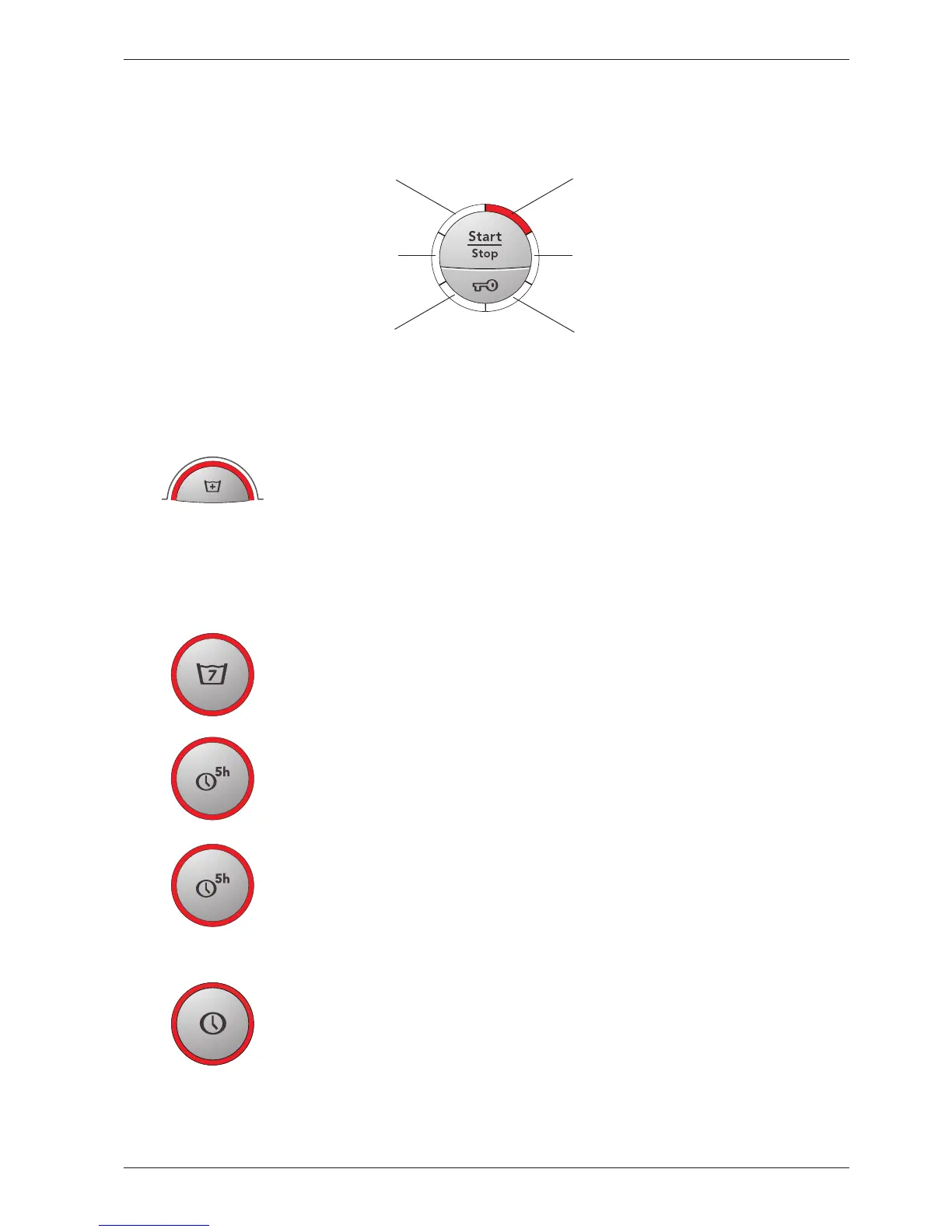 During the programme, the current programme sequence is indicated by a fixed light in the LEDs around the start/stop/