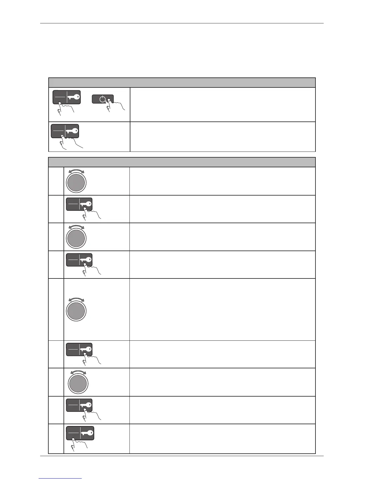 Press the Key button to open one of the menus.