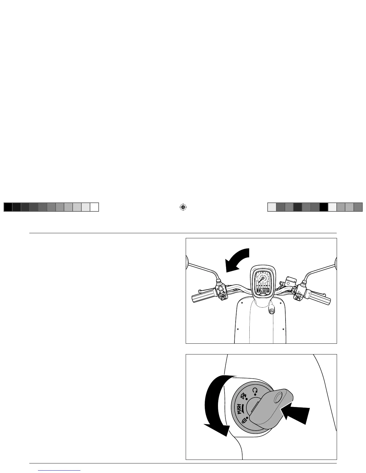 To engage the steering lock, turn the handlebar left until