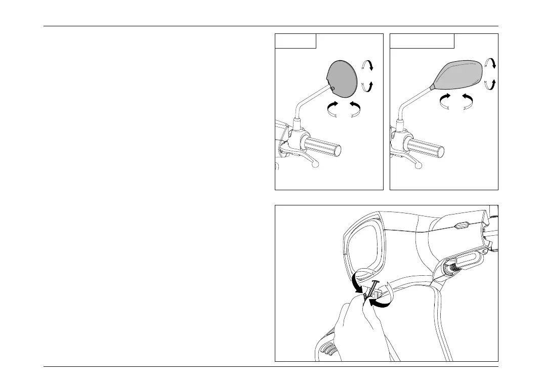 On the right and left of the handlebar, two mirrors are