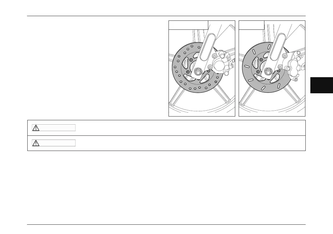 In case of brake malfunctions check brake pad wear, if thickness is reduced both are