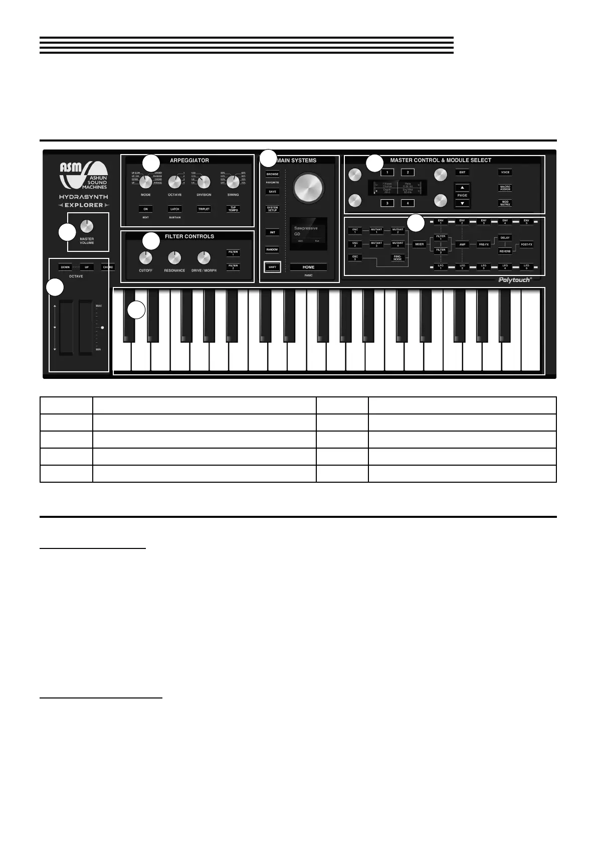 2 Pitch / Mod strips, Octave / Chord buttons 6 Main Systems section