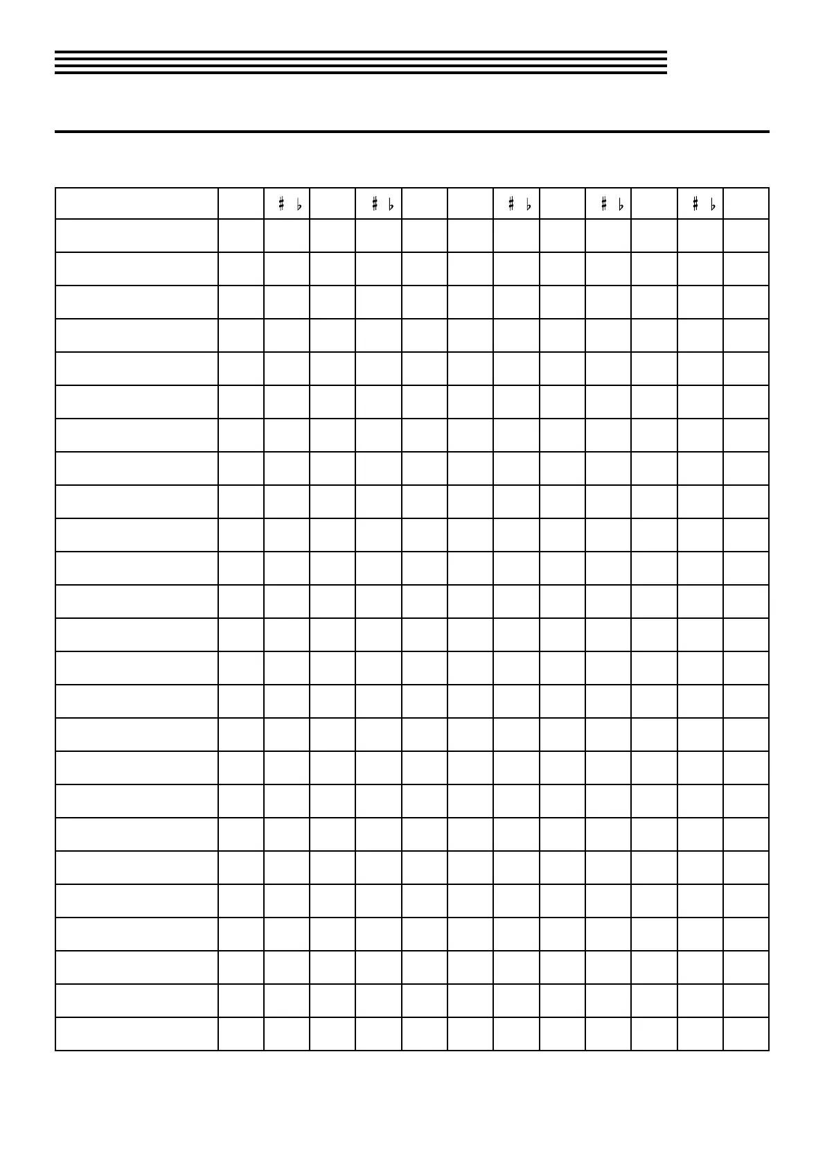 Below are the notes of each preset scale relative to the key of C. An “x” means that note is in the scale; a