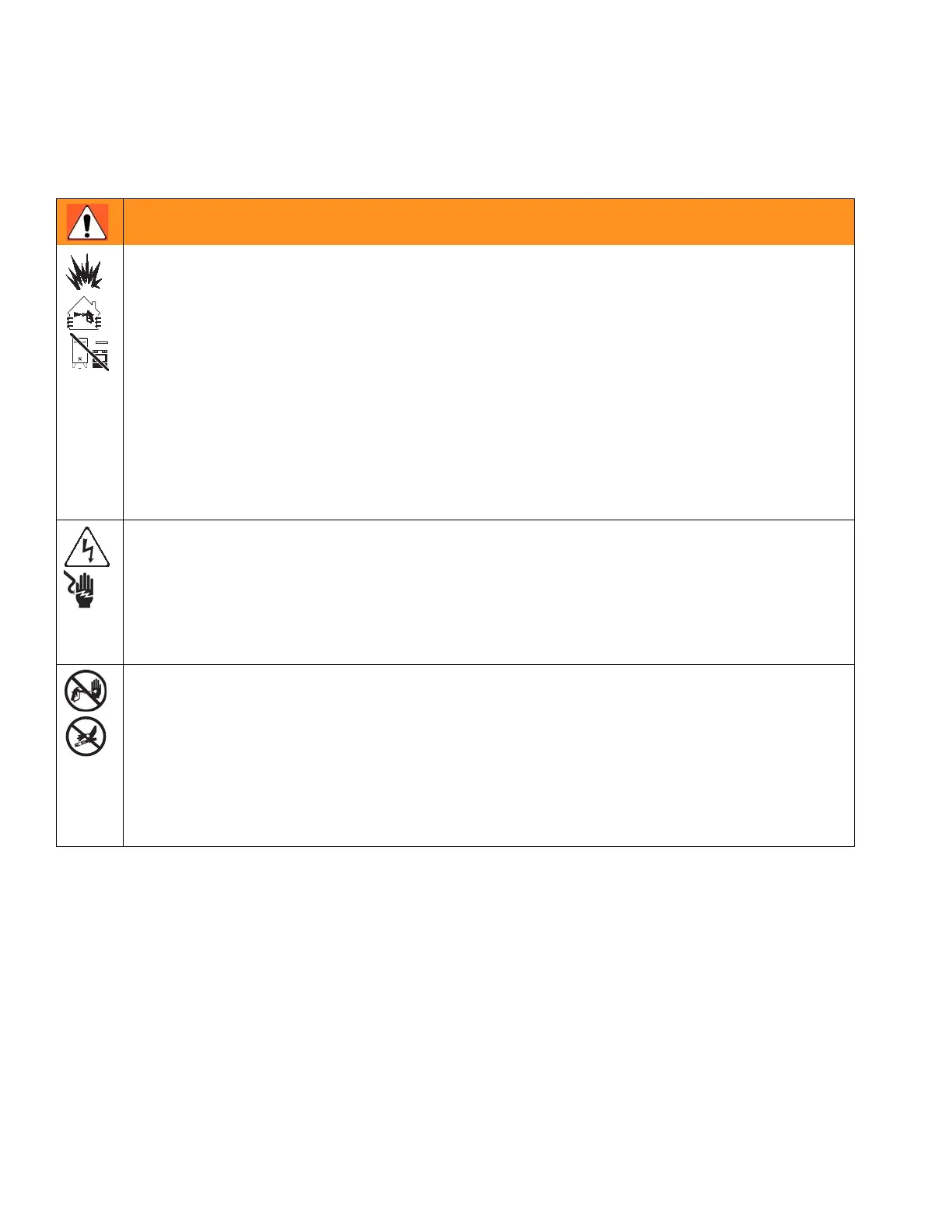 • Sprayer generates sparks. When flammable liquid is used in or near the sprayer or for flushing or