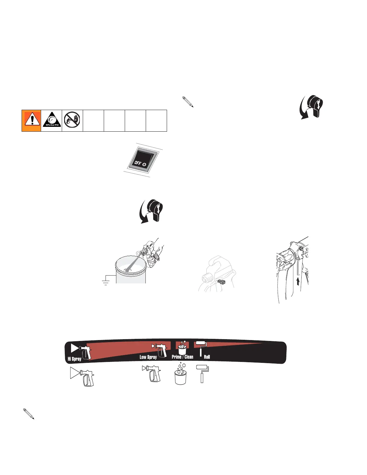 To select function, align arrow on sprayer within range of function symbol on pressure control knob.