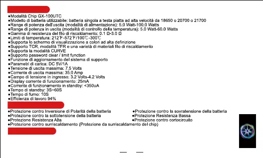 Parametri tecnici: