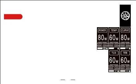 在触屏解锁状态下,左右滑屏可循环选择工作模式(POWER、TEMP、