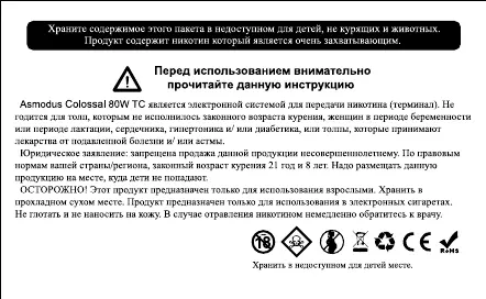 Other manuals for asmodus Colossal 80W