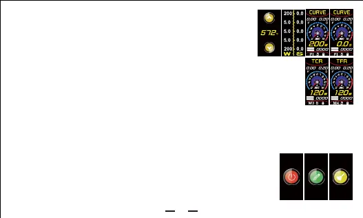 TCR选择:在触屏解锁状态下,上下滑屏或手势上下滑动可循环选择M1~M5。温控功率设置、温度设置