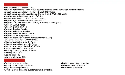 asmodus LUSTRO 200W - Technical Parameters; Safety Protections