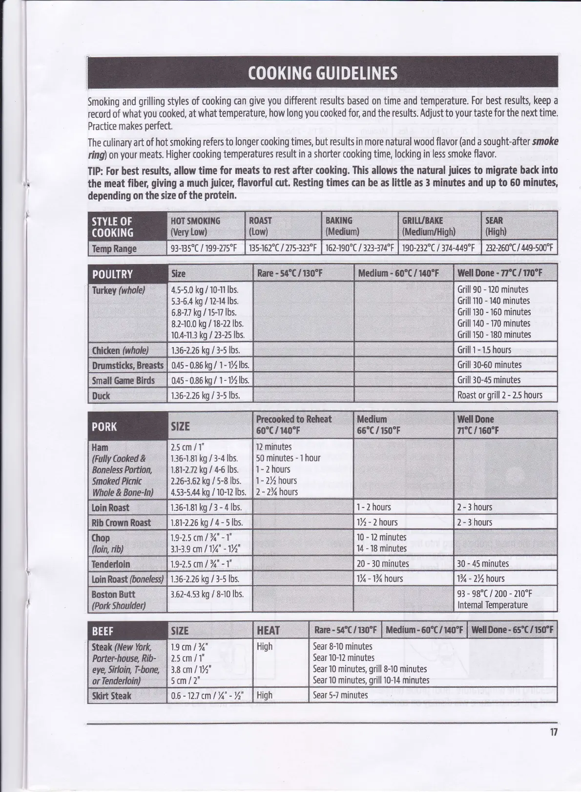 Asmoke AS300 - Cooking Guidelines; Temperature and Time Recommendations
