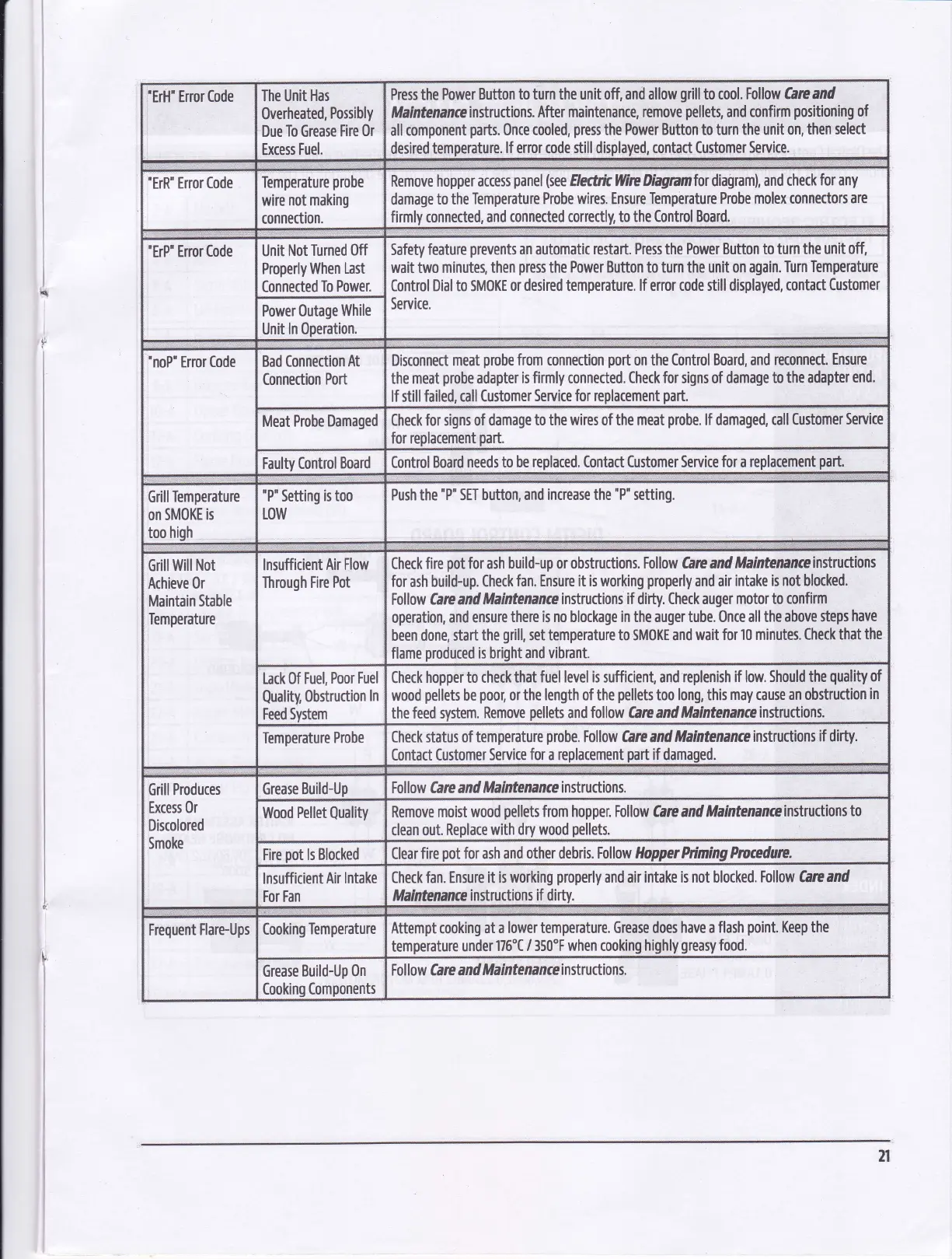 or desired temperature. lf enor code still displayed,