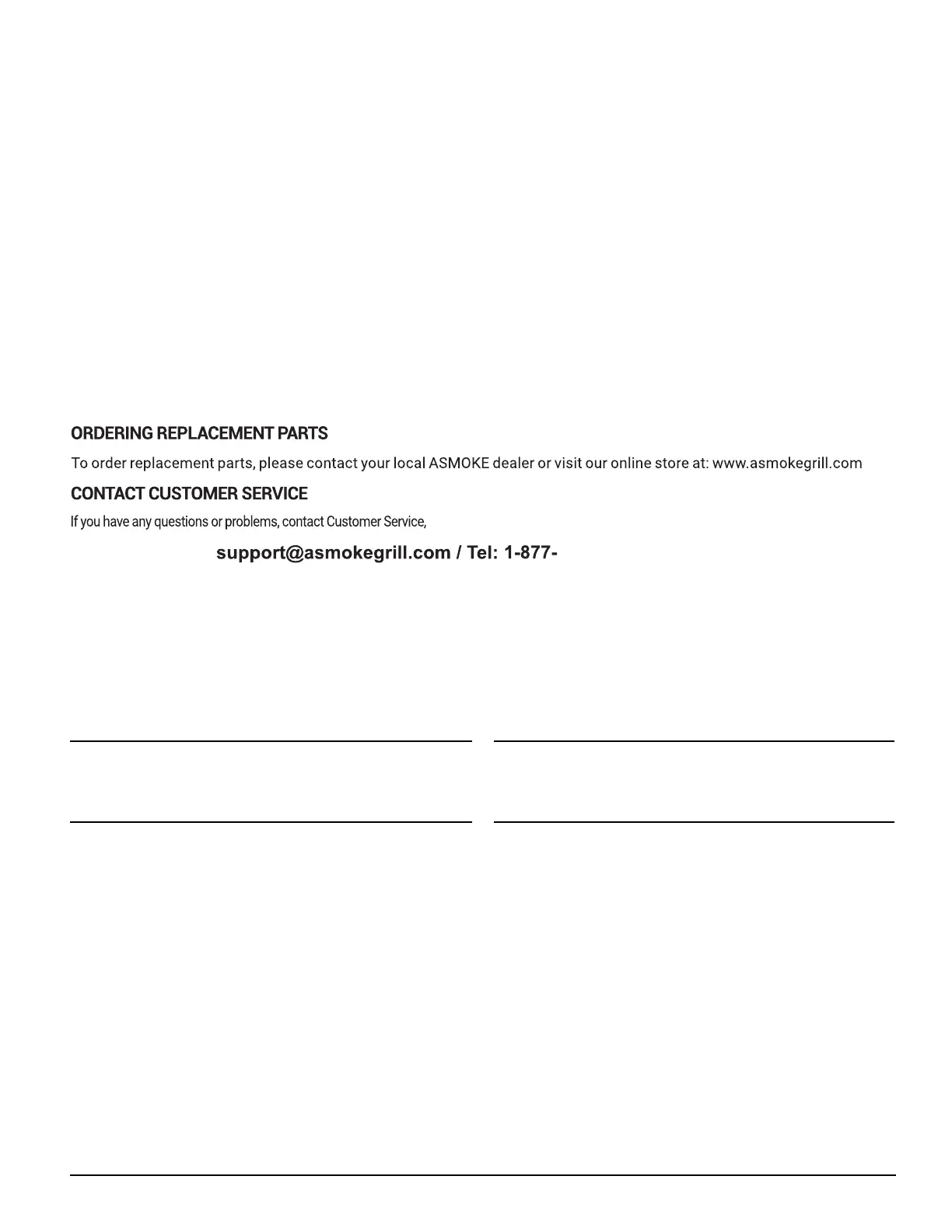 Contact your nearest ASMOKE dealer for repair or replacement parts. ASMOKE requires proof of purchase to establish a