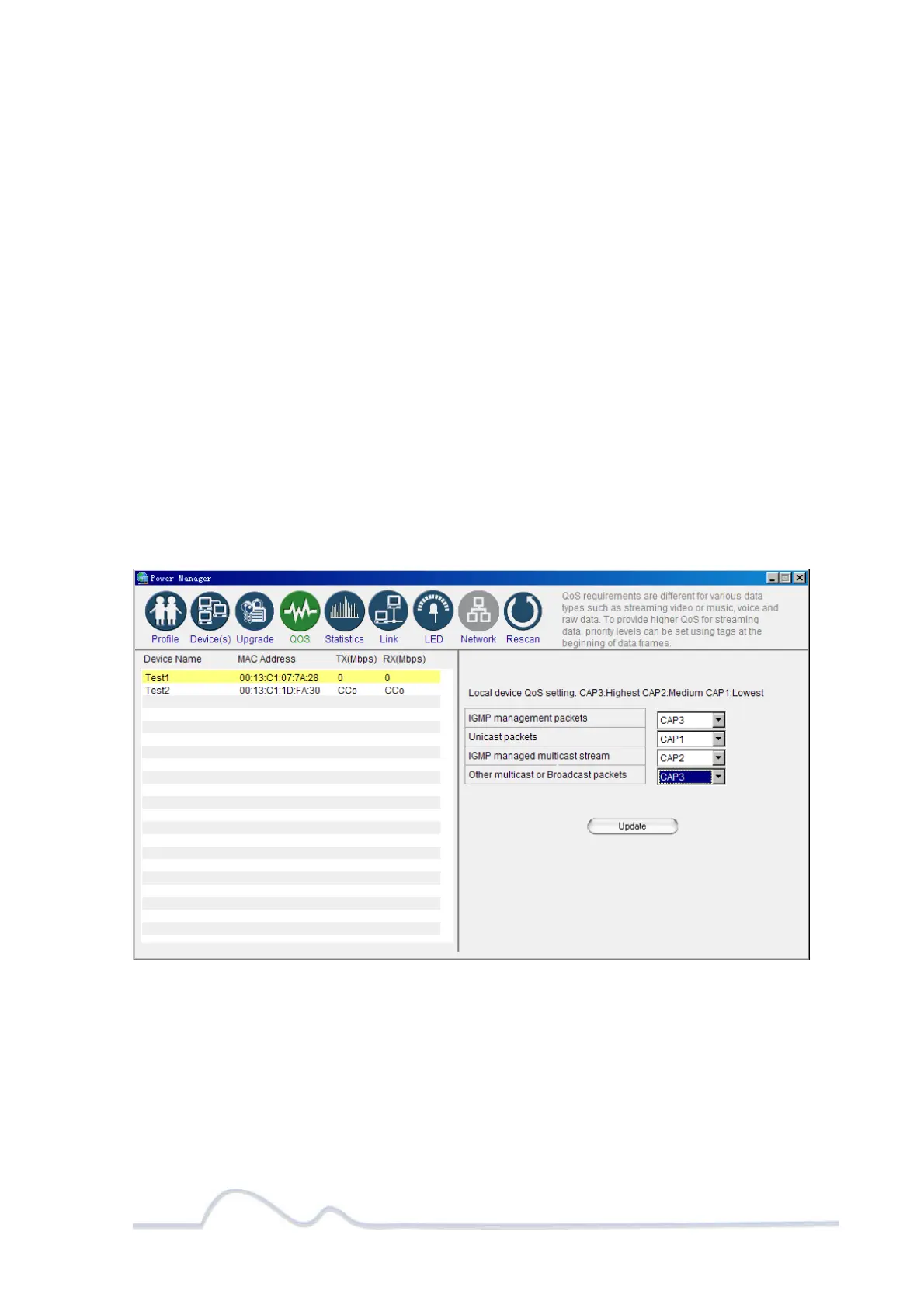 The QoS level settings are: CAP3: Highest CAP2: Medium and CAP1: Lowest.