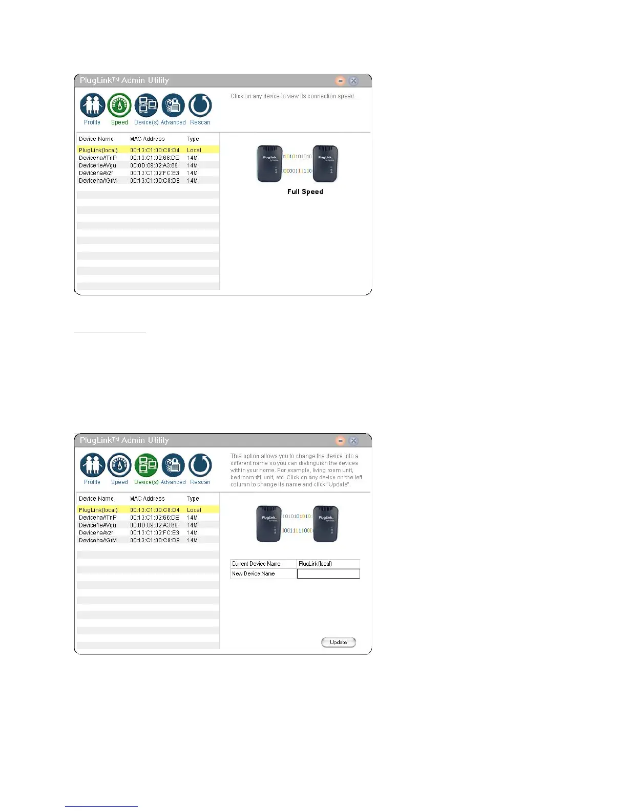 The Device Screen displays the names of all the devices on your network. It also allows you to