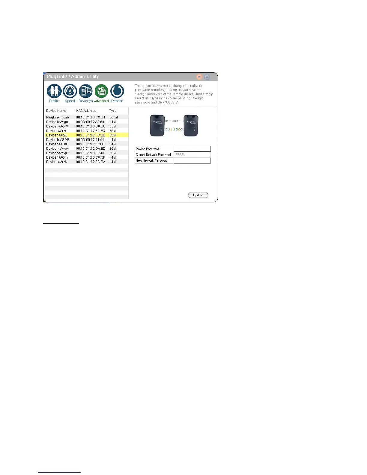 The Rescan Icon allows you to rescan the devices on the Powerline network.