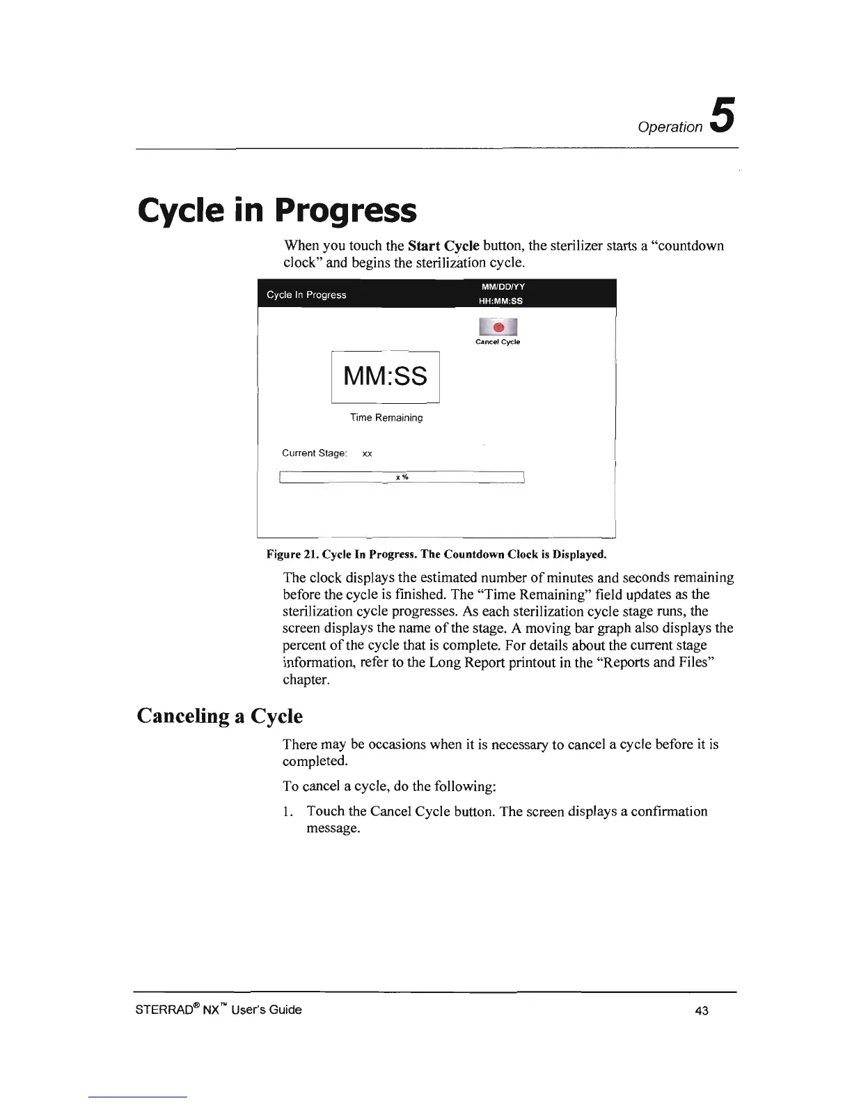 I. Touch the Cancel Cycle button. The screen displays a confirmation