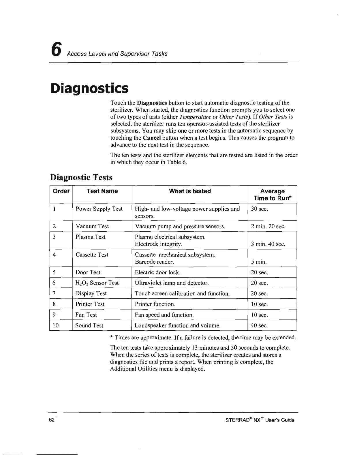 Power Supply Test High- and low-voltage power supplies and 30 sec.