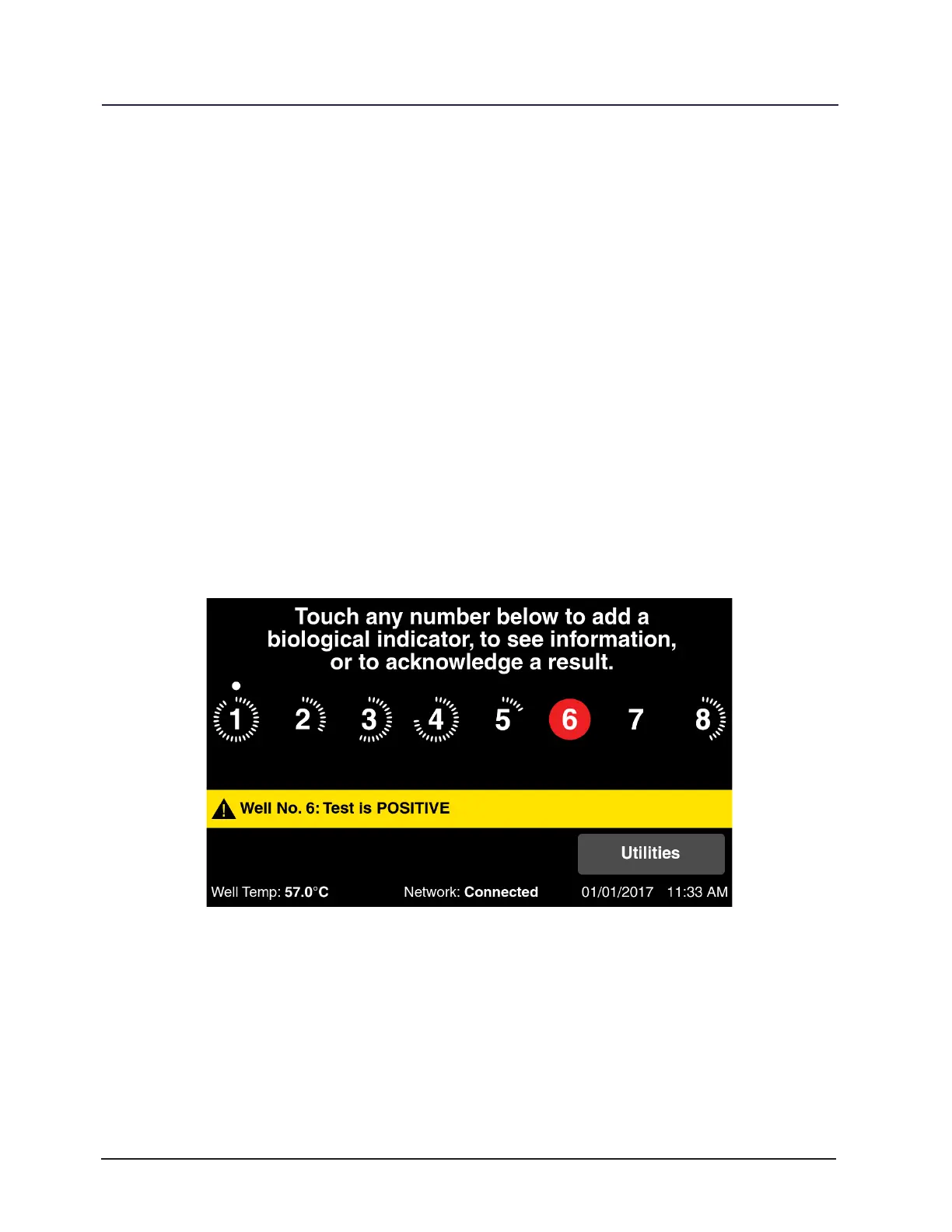 or a negative result for a positive control BI. A yellow well number and caution symbol
