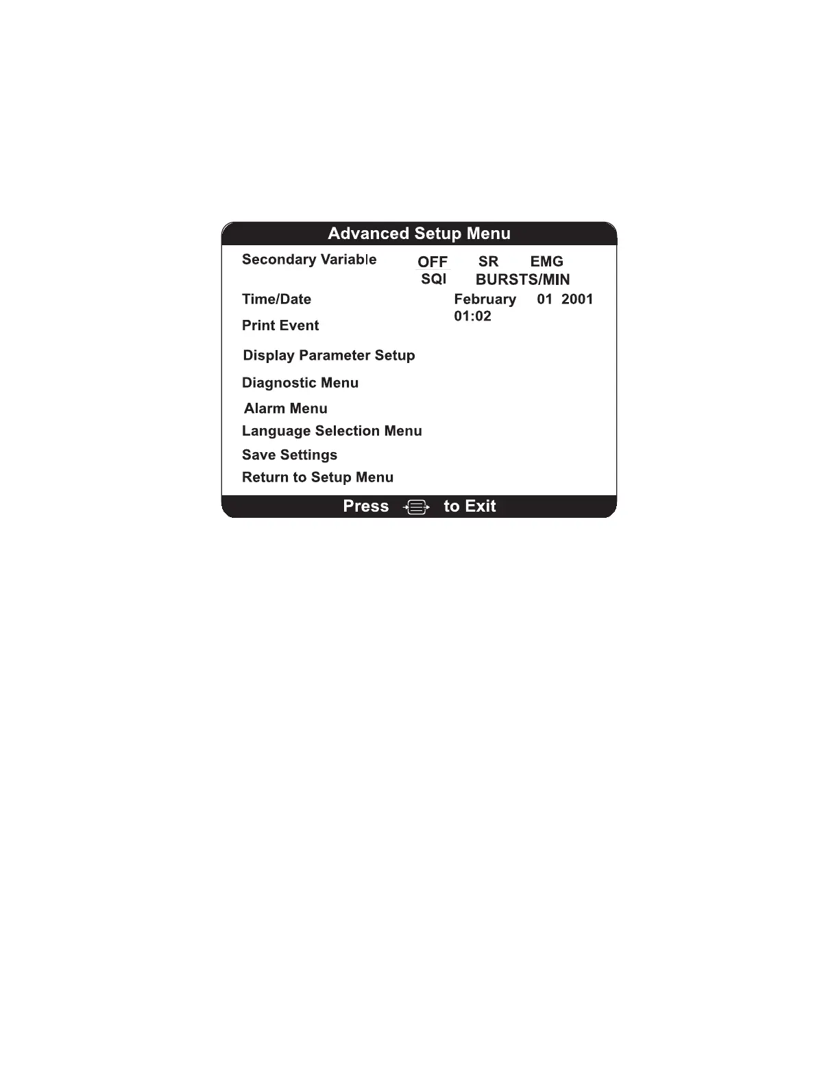 The Advanced Setup Menu is used to select infrequently changed parameters. You may