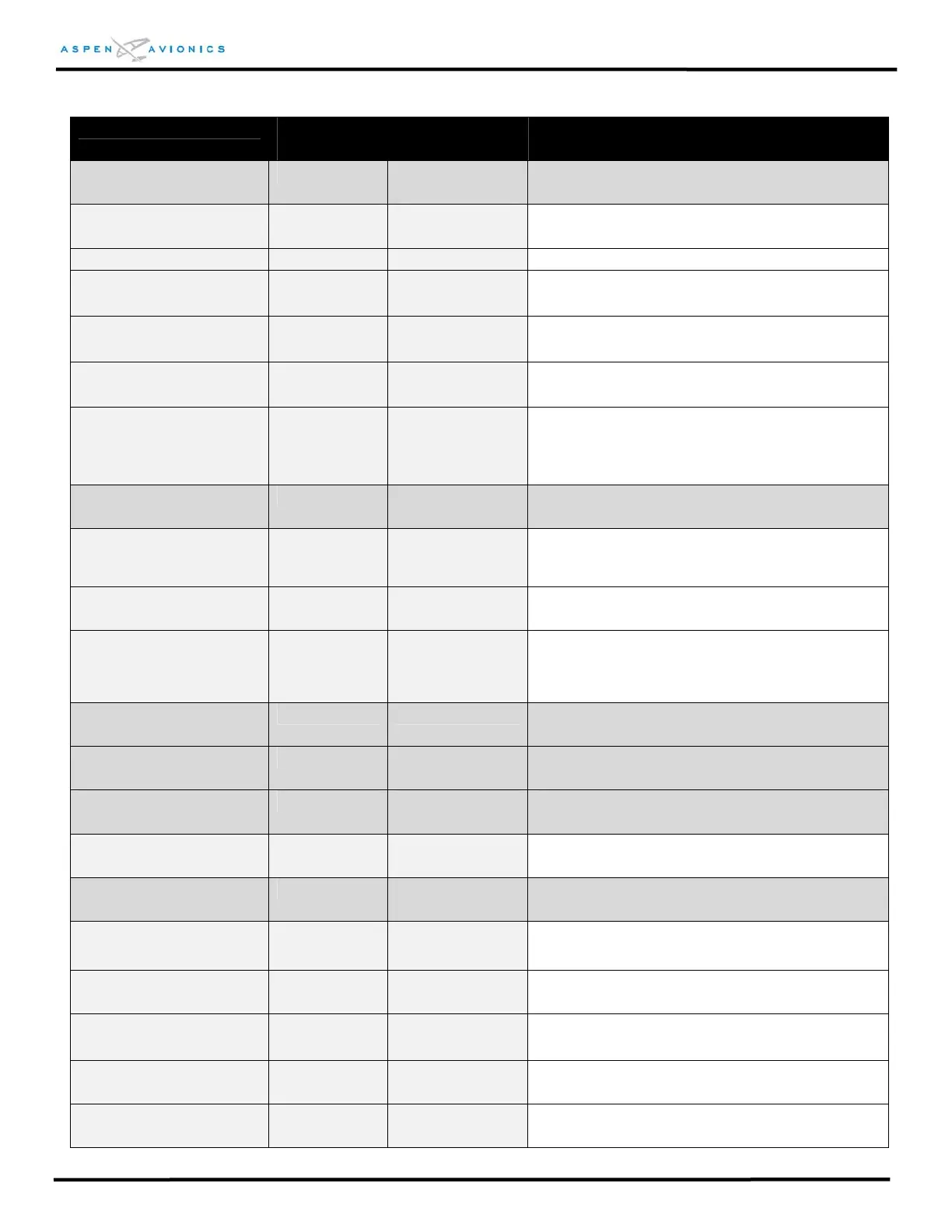 EFD1000 CONFIGRATION PER AIRCRAFT