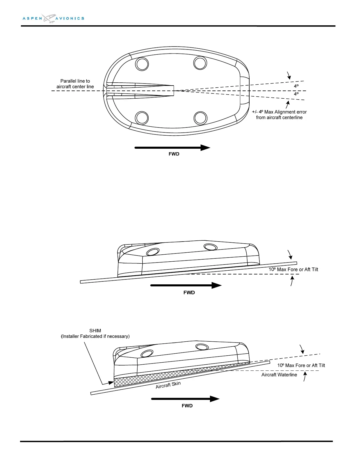 Maximum fore and aft tilt is in relation to the aircraft waterline. An aluminum shim