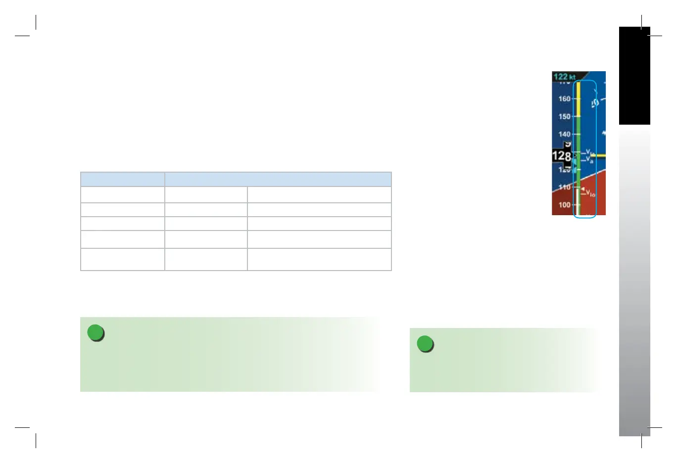 speeds, where applicable. The textual Vspeed labels are made pilot adjustable or locked