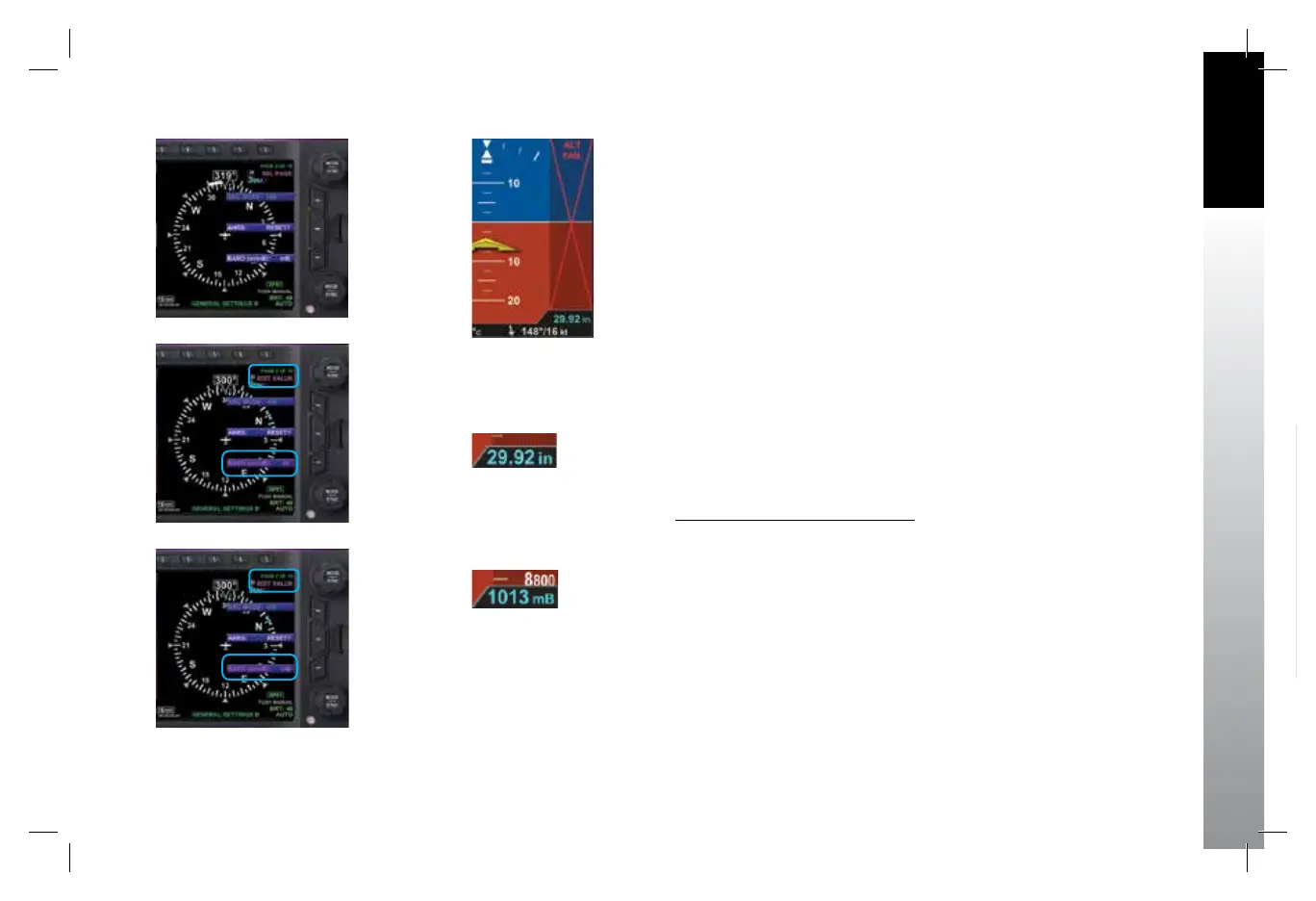 by the pilot in the Menu. The adjustment range is 28.10 – 30.99 inches