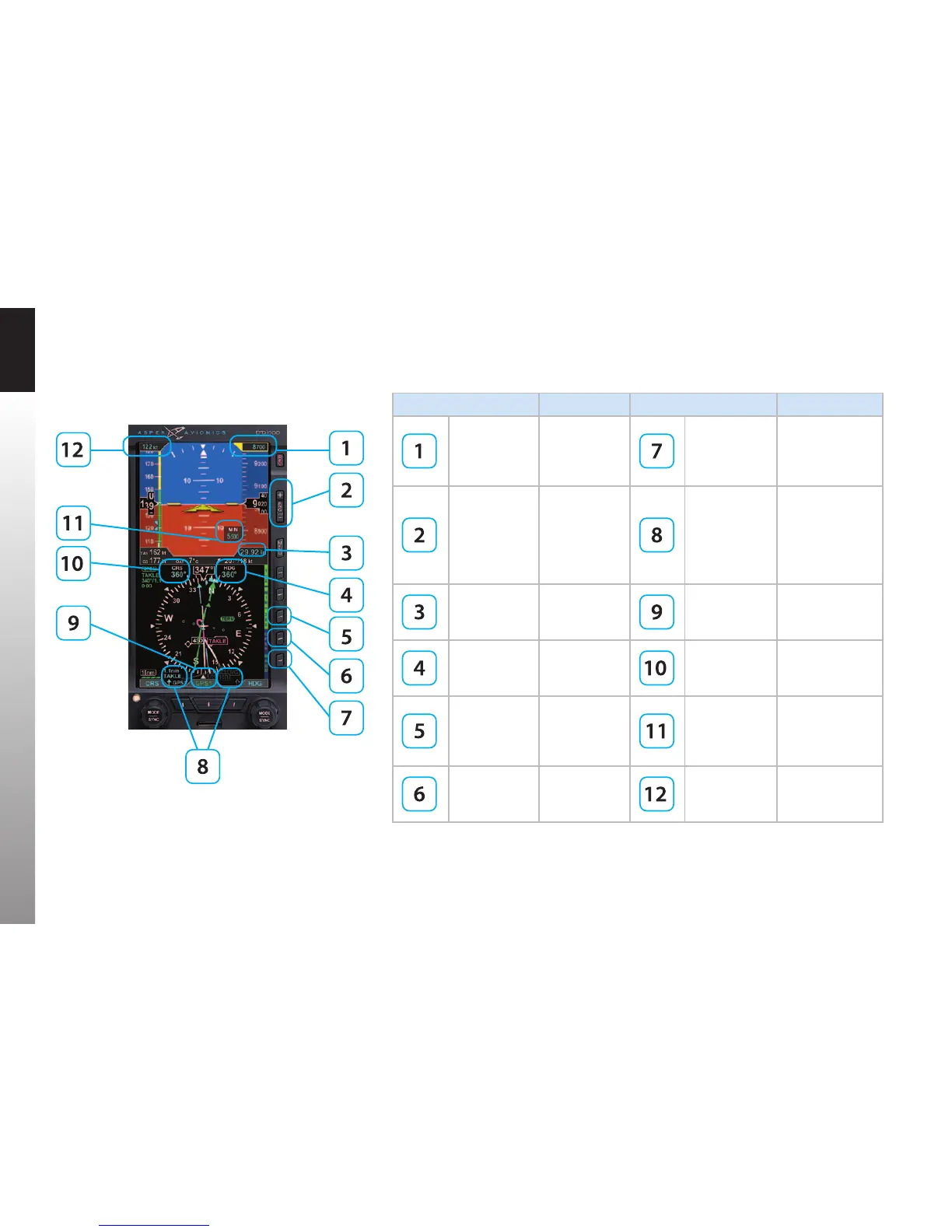 Aspen Avionics Evolution EFD 1000 C3 Pro PFD - Table 3-1 Basic EFD1000 Settings