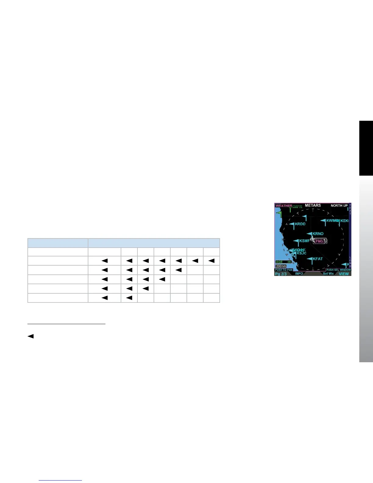 The EFD1000/500 MFD displays METARs as colored ags. The METAR screen displays