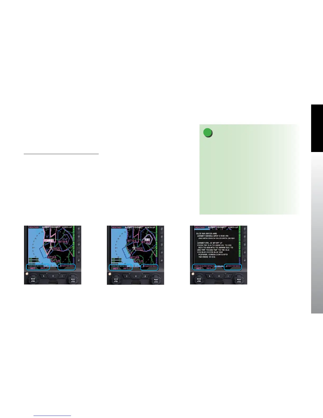 AIRMET/SIGMET you want to read, then press the Left Knob labeled INFO to view the