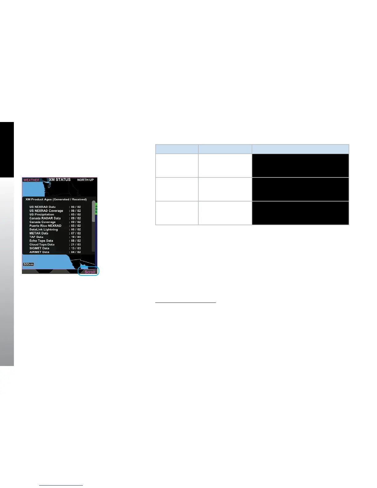 1. With the XM Status weather product screen displayed, press the AGE Hot Key.