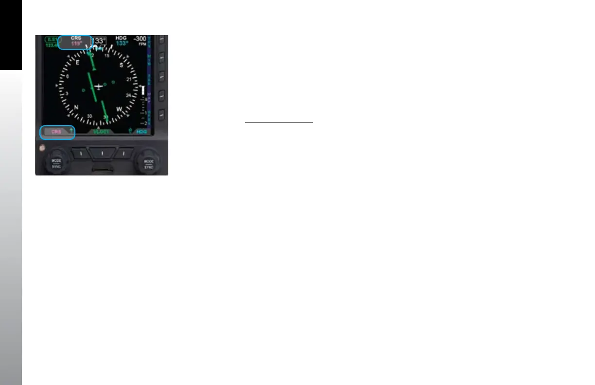 1. Press the Left Knob until CRS displays above the Left Knob and the Course