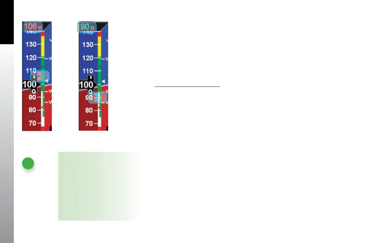 displayed adjacent to the Airspeed Tape when the Selected Airspeed value is within the
