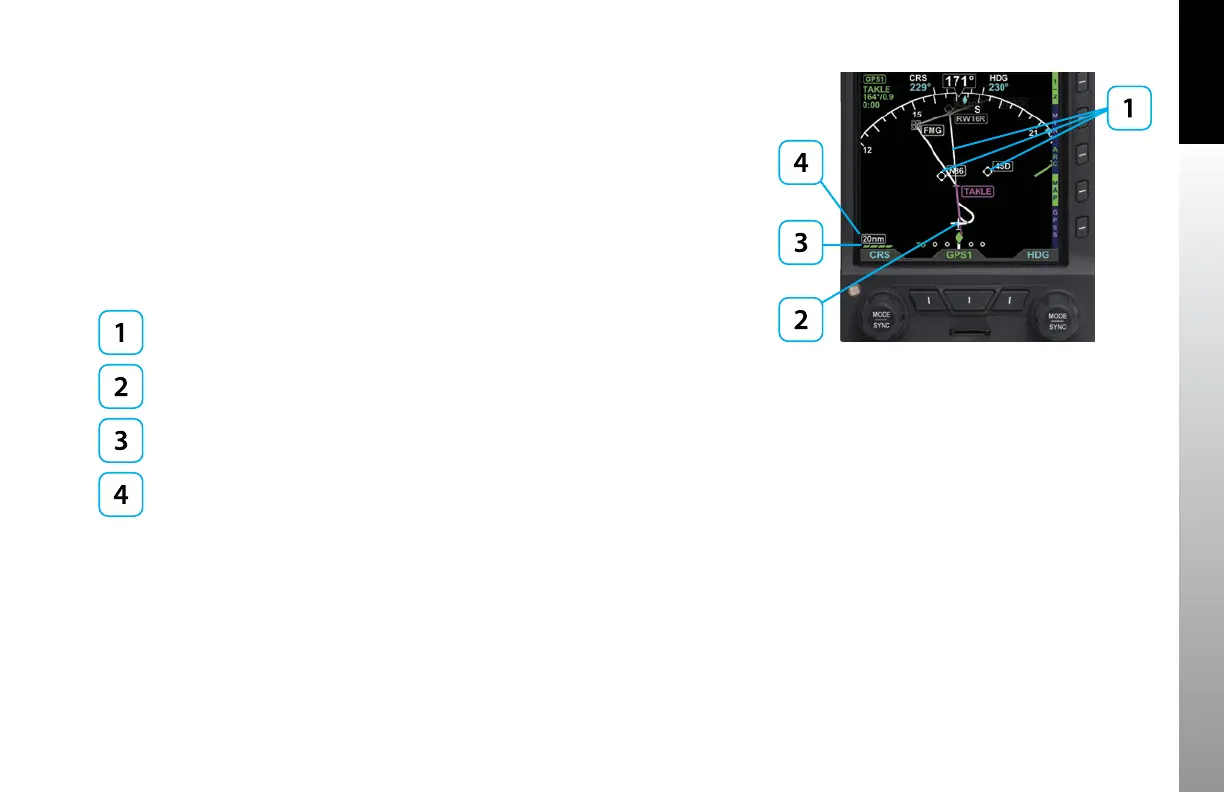 these elements in context of the aircraft location, heading and track on the Navigation