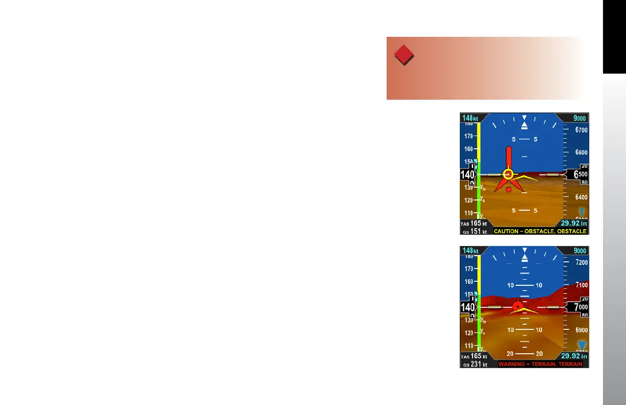 When the Flight Path Marker is positioned over terrain or an obstacle and the Terrain