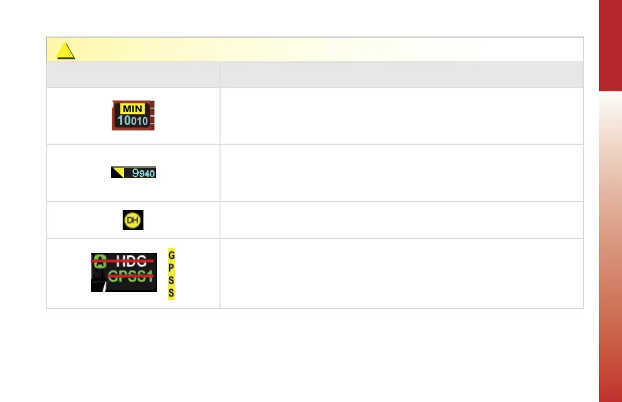 The optional radar altimeter Decision height input indicates the aircraft is at or below the