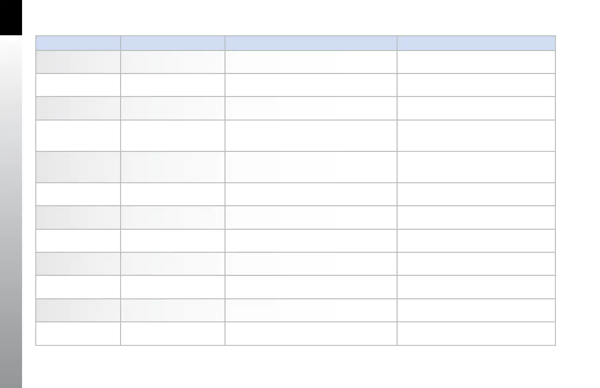 Menu Name Menu Item Description OPTIONS
