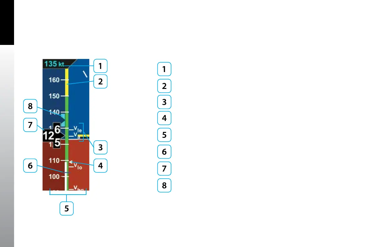 The Airspeed Indicator comprises a moving tape, airspeed bug, and numerical airspeed