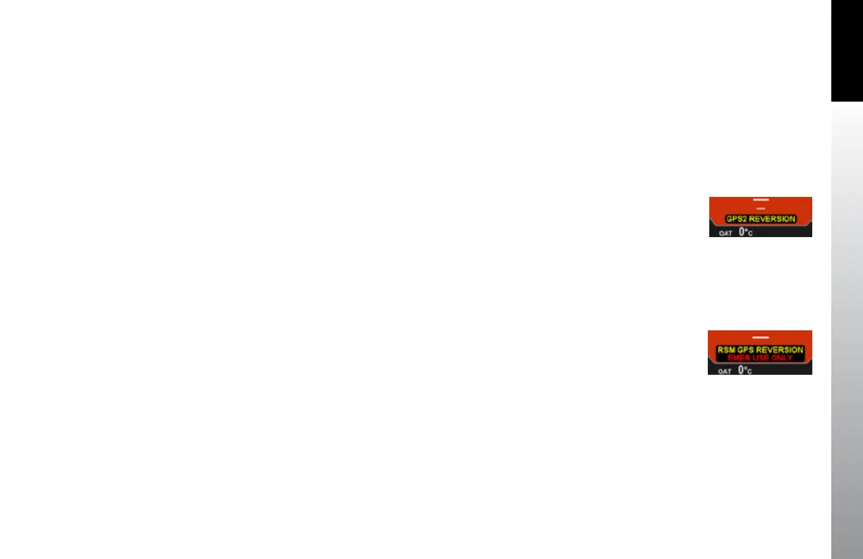 GPS REVERSION EMER USE ONLY annunciation is shown above the Selected