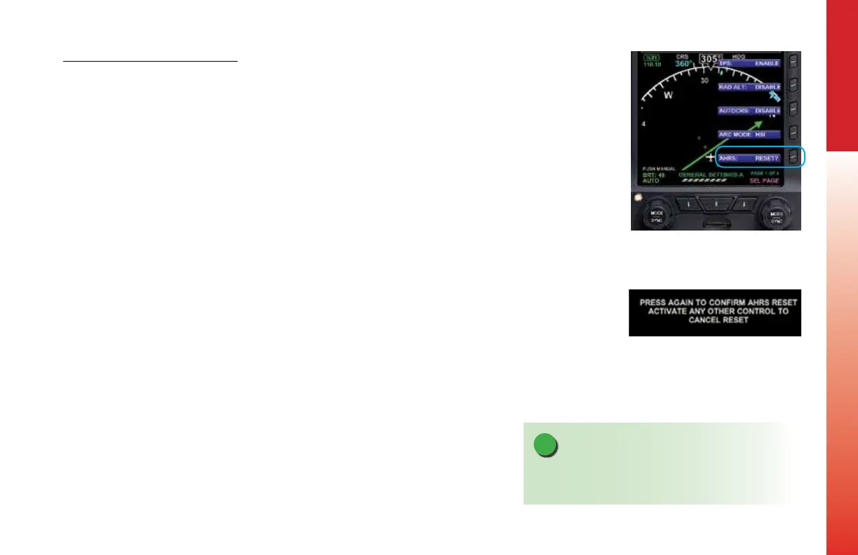 8. Press the AHRS Menu Key again to conrm the AHRS reset. The AHRS reset is